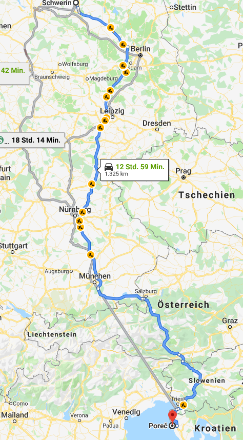 Wir fahren mit dem Auto und nehmen die Fahrräder mit. Fest geplant ist schon eine Fahrradtour „Runde um den Chiemsee“ . Danach geht es weiter bis Porec und schließlich eine Woche später beginnt die Rückreise.